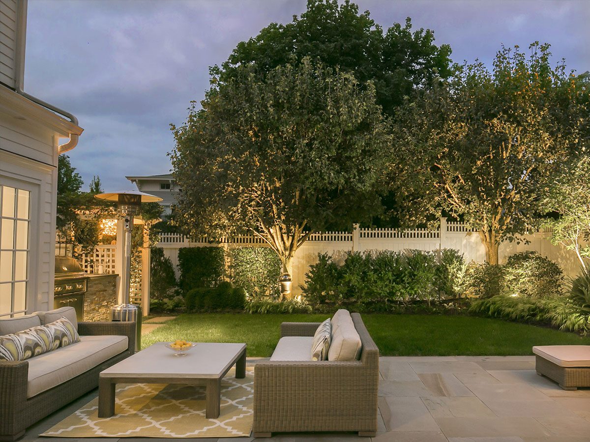 Homeowners didn’t have the room to entertain, to relax, or to pamper their two West Highland terriers – until our designers helped reimagine this small space. After demolishing the existing fence, patio and gate, we reworked the flow of the layout. A new bluestone patio and an improved privacy fence were constructed. Durable fescue sod created an expanded grassy area. A layered “white” garden of vinca, hostas, hydrangeas, and magnolias created depth and visual interest. Finally, efficient LED lighting added a magical ambiance for entertaining. Now this small space offers so much more – for everyone.